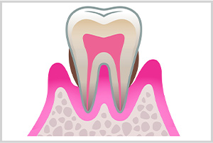 歯と歯茎の間に歯周ポケットができ、プラークや歯石が溜まり始めます。